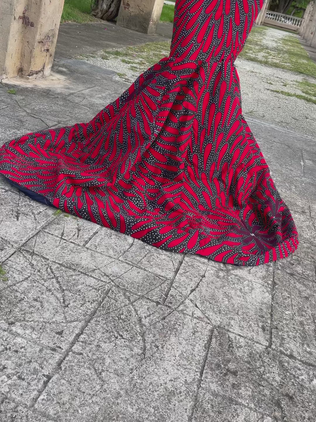 This is a beautiful statement piece dress that you are sure to love. The elegant gown has a sexy plunging deep-v neckline that is trimmed with clear rhinestones. When you are wearing this dress, you will feel amazing and beautiful. This dress can be worn on any special day such as weddings, prom, or a gala. Make your special day more special with this elegant and luxurious dress.